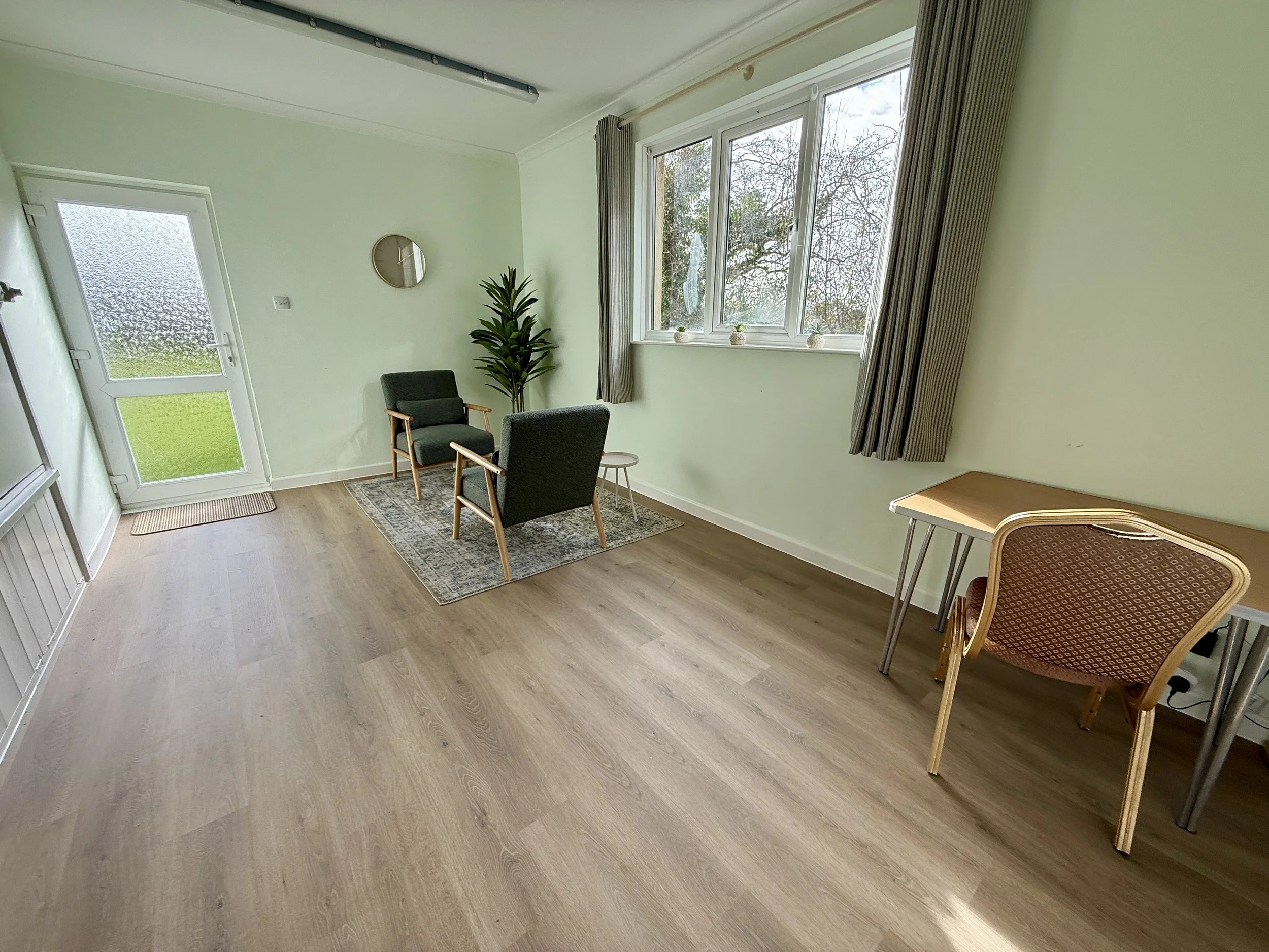 Our wonderful new Therapy and wellness room provided for the benefit of the local community . It is a chilled, comfortable space with its own external door and parking.